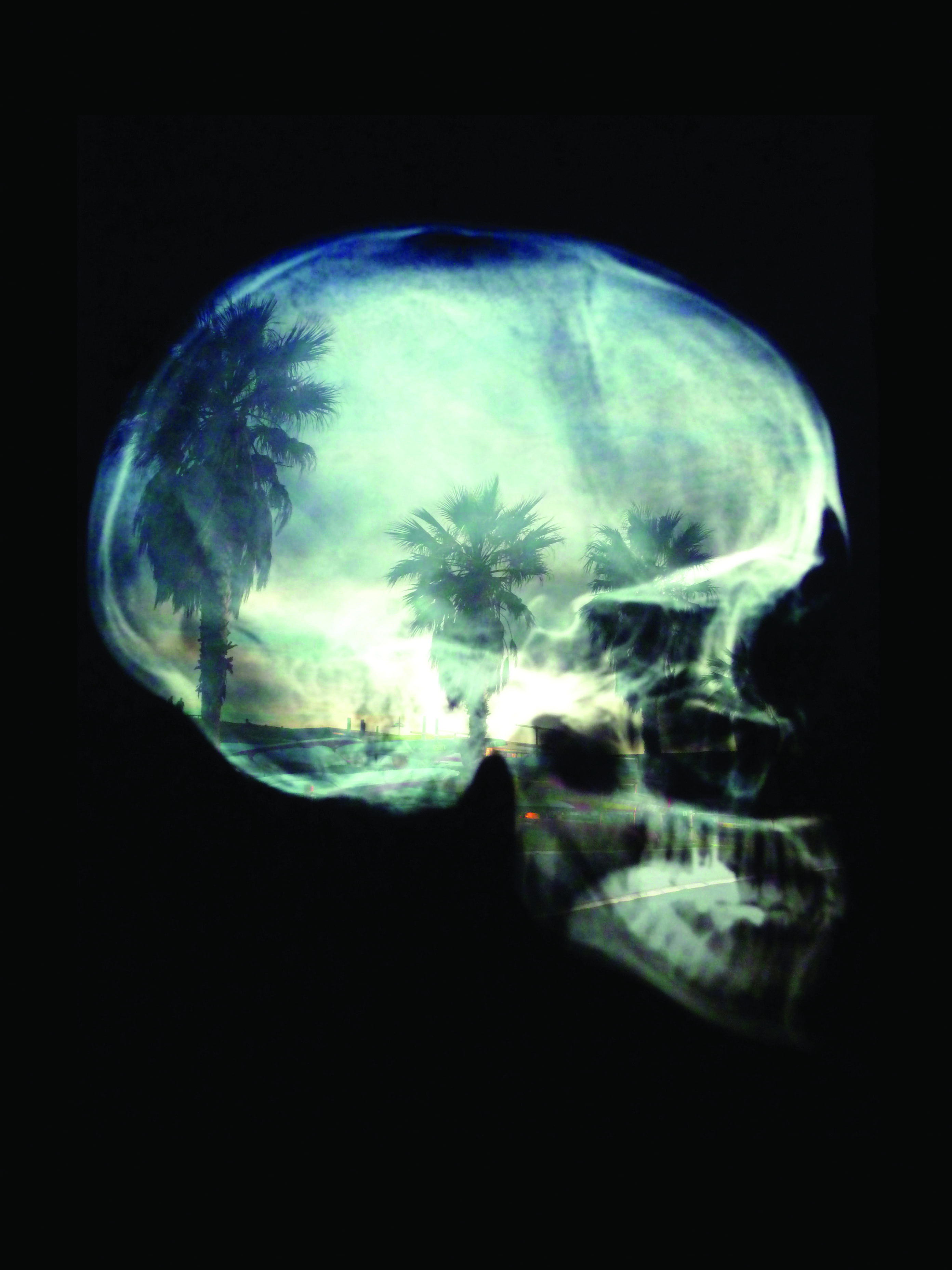 Boris Chouvellon retient les zébrures des paysages industriels dans la boîte noire de son crâne, tenant à bout de main devant l’appareil photo une radiographie de sa tête, qui dédouble l’artiste lors des prises de vues.