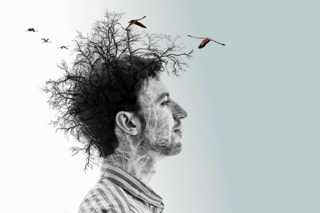 Les images révèlent des scènes de fusion étonnantes, où les têtes humaines se mêlent aux formes végétales, illustrant que l’union des deux est belle et riche de sens.